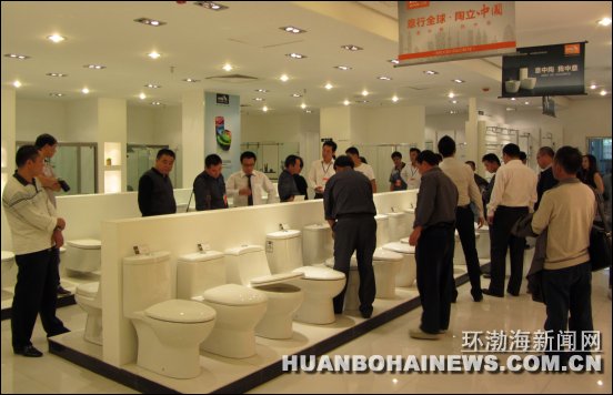 第十四届唐山中国陶瓷博览会开幕在即,来自全国各地的陶瓷客商纷纷来到唐山这座久负盛名的“北方瓷都”参观考察。图为9月15日,唐山中陶实业有限公司特邀来自全国各地的近70位客商到公司总部展厅参观。