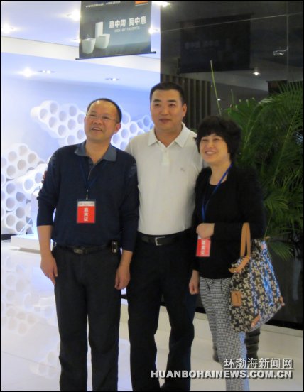 第十四届唐山中国陶瓷博览会开幕在即,来自全国各地的陶瓷客商纷纷来到唐山这座久负盛名的“北方瓷都”参观考察。图为9月15日,唐山中陶实业有限公司特邀来自全国各地的近70位客商到公司总部展厅参观,客商与公司总裁夏剑石(中)合影。