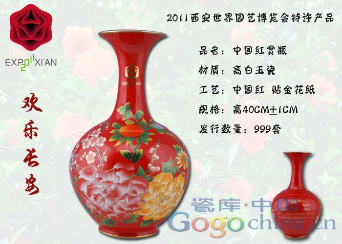图:世界园博会礼品欢乐长安陶瓷花瓶-全球限量999件