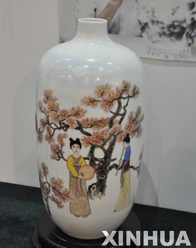 摆在大厅显眼处的《九鹤起舞》薄胎大碗,最薄处不足2毫米;艺术陶瓷泰斗王锡良的粉彩仕女瓶,用色典雅考究……这些名家名品标志着当代景德镇制瓷的高超技艺,是本届陶博会的展示珍品。