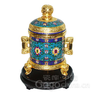 图:景泰蓝手工艺品13寸三足盖炉·香炉鼎樽