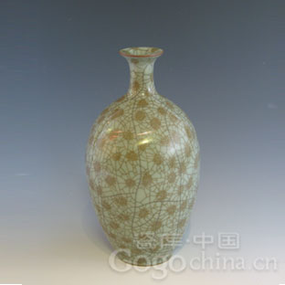 图:龙泉青瓷手工点缀橄榄瓶
