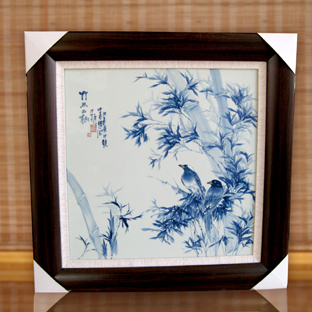 图:竹林双栖瓷板画