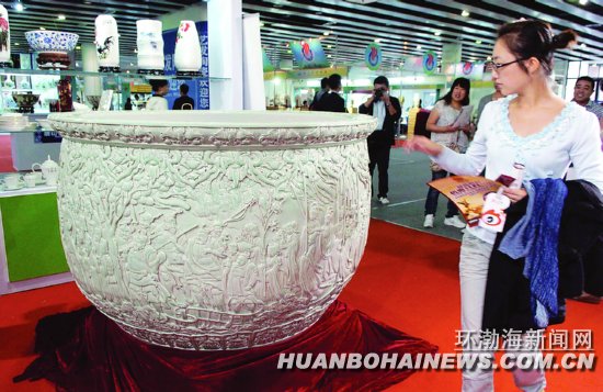陶瓷博会上大缸引来众多市民参观