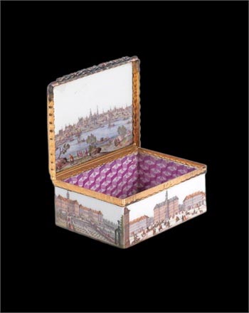 旧时,这如宝石般的珍贵鼻烟盒常以礼物的形式赠予王子,君主及外交官。有时候还会专为王子及公主们专门定做。系列里最昂贵的是一件受到了Bernardo Bellotto的雕刻作品而启发,盖内雕刻有精细的德累斯顿市貌的作品。整个系列估计市值为一百万英镑左右。