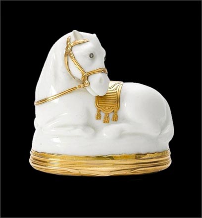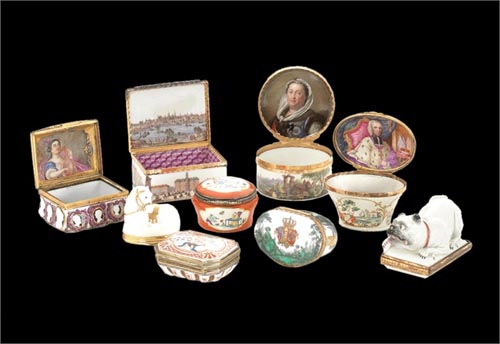 鼻烟盒的制作是为了防止烟草水分蒸发。鼻烟盒都以精细的陶瓷制作并饰以黄金,瓷釉,珍珠母及各种珍贵的宝石。每一个鼻烟盒都是一件艺术臻品。整一个系列也让人纵览了欧洲的高级知名瓷器,有卡波迪蒙蒂陶瓷,迈森陶瓷,富尔达陶瓷及塞夫勒陶瓷。