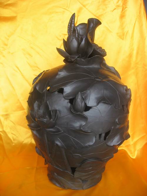 中国的造型艺术始于陶,陶文化是华夏古文明的一个重要渊源。日照境内古遗址出土的各类陶器,是中国龙山文化最著名、最典型的陶器,被史学家称为“原始文化的瑰宝”。整整沉睡了四千多年的古文化,在仇志海先生手上得以恢复。卜广云的的黑陶作品独具“仇氏”风格与魅力。她将历史文化的意蕴与现代审美观念巧妙结合,其作品粗狂奔放、简洁流畅、如刀劈斧凿、似生命在现、古朴典雅、现青铜之光……