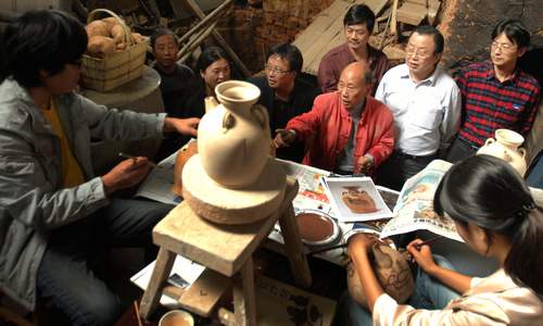 9月26日,湖南工艺美术职业学院的教授来到望城区铜官镇陶艺大师胡武强家,了解长沙铜官窑技艺传承现状。为弘扬湖湘民间工艺文化,该校开展“让民间艺术走进大学校园”系列活动,并投入资金相继为湘绣、竹艺、陶瓷等行业的省工艺美术大师建立了工作室。