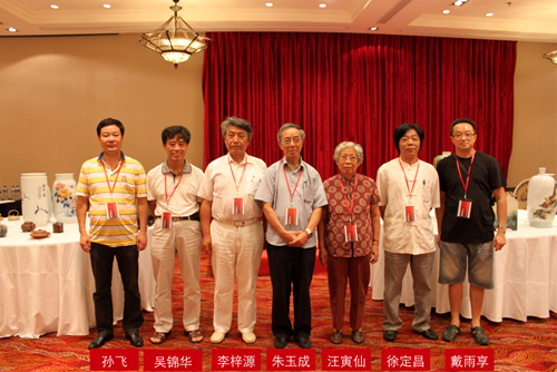 此次活动评委,从左到右依次为:孙飞(景德镇陶瓷行业协会副会长)、吴锦华(中国工艺美术大师)、李梓源(中国陶瓷艺术大师)、朱玉成(中国工艺美术学会副理事长、专家组成员、上海文史馆馆员)、汪寅仙(中国工艺美术大师)、徐定昌(中国陶瓷艺术大师)、戴雨享(中国美院陶艺系教授、硕士生导师)。