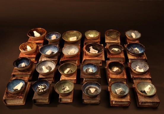 作品由书籍、碗和碗中的金属件组成,作者通过书籍和碗来反思人类的物质食粮和精神食粮,而碗中的金属件又让人对今天的文化现象产生不解和疑惑,书籍传承着历史与文化,饮食同样传承着历史与文化,而昨日之文化让人反思,人们所吸收的真是精华吗?