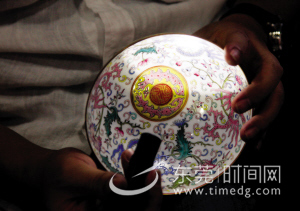 瓷器方面,大部分经过初评的藏品都得到专家的认可,但也有一些被专家认为有疑问或者分量不足于参加联展。王先生带了三件瓷器给专家鉴定,专家认为三件瓷器都是清朝康熙年间的产物,但其艺术价值一般,不能参加联展。