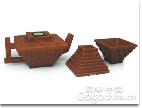 图:世博会特制收藏品_东方之冠金玉紫砂壶茶具