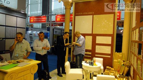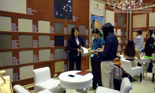 嘉俊陶瓷携最新款的微粉、玉晶石、罗马洞石等产品亮相第110届广交会,受到中外客商的青睐。在短短几天时间里,共有来自南美、中东以及欧洲等地的600多位客商前来咨询洽谈,对嘉俊的高品质产品表现出浓厚兴趣,现场签约及意向性协议金额超过上届。图为国外采购商在嘉俊展位洽谈业务。