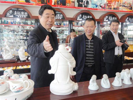 原福建省副省长、福建省政协副主席、现任省诚信促进会会长潘心城于2012年3月19日莅临我司关心、指导!潘会长对我司的博物馆展厅设计装修、历史文化和陶瓷传承以及陶瓷产品等都高度赞赏,并提出宝贵的建设性意见和建议。