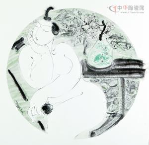 刘正作品中重叠相连的人体造型体现了瓷板画具有展现雕塑这一艺术形态的可能性。“我一直觉得我挣扎在一张网中,这张网是由复杂的历史文化构成的。一方面,我需要依赖这张网,使自己不至于悬浮在空中。另一方面,我需要挣脱这张网,使自己减少被束缚的痛苦和被窒息的危险。”这就是他的当代艺术创作理念。他的釉下彩瓷系列作品,立意新颖,逻辑思维缜密,通过具有生命力的线条,张扬了瓷板画的哲学空间。
