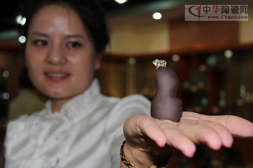 一家德化陶瓷企业向记者展示迷你“茶虫”,别看它个小,淋开水后针尖大小的嘴孔还能喷水。