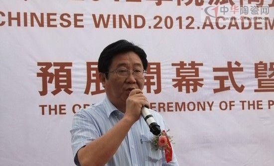 6月22日上午,“中国风·2012学院派陶瓷艺术作品专场拍卖会”预展开幕式及新闻发布会在景德镇华艺拍卖有限公司举行。市人大常委会副主任、市委秘书长余振泰,副市长熊皓,市政协副主席何炳炊,市人大秘书长冯国平等出席开幕式。余振泰宣布开幕,熊皓讲话。
