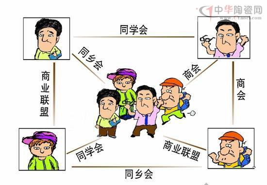 人以群分,物以类聚,话说有人的地方就有江湖,而江湖内总能分出不同的派别,隐藏着许多不为人知的猫腻。建陶行业内千丝万缕的关系,更多的是以各种同学会、同乡会、商会、联盟等形式呈现。他们纷纷以“组织”为诱饵,引人上钩。这些组织和活动无不披着一张“温情”的外衣,而参与其中的人员,各怀各种目的,混迹组织,上演的可能是一出出人脉资源、利益资源的抢占和争夺。要想在其中混,不妨先多了解一下那里的风景到底如何。