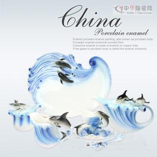 图:16头蓝色海豚精品珐琅瓷咖啡具套装_春节礼品 全国包邮