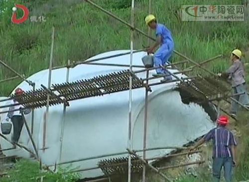 虽然持续的高温热浪袭人,但是为了赶工程进度,施工人员依然坚持作业,在进城大道高速路口陶瓷文化景观长廊“名扬四海”段施工现场,工人们扛钢材、运水泥、抹石灰,现场一派热火朝天。在公路的边坡上,施工人员正忙着为考古花瓶抹灰塑型焊接钢筋,绑绳固定,大家忙得不亦乐乎;在“南海一号”船模造型的施工现场,船桅杆的基本雏形已经完成,其他部分也正加紧建设中。