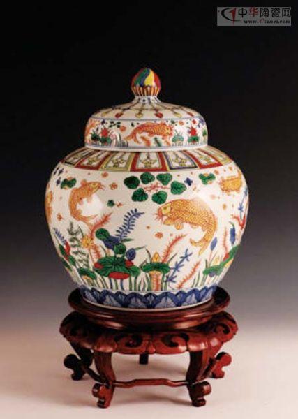 嘉靖五彩鱼藻纹盖罐,1955年出土于北京东郊,为明代的陈设品,现收藏于中国国家博物馆。