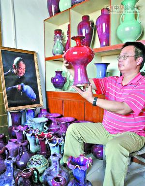 和全国其他的陶瓷大师们相比,这个数字是个相当保守的。但晋晓瞳不觉得少,他有个心愿:让自己做的钧瓷能够成为后人无比珍视艺术珍藏的珍宝。“哪怕只有几件作品得以永恒流传,也是艺术家的生命在延续。”他想追求这种永恒感。