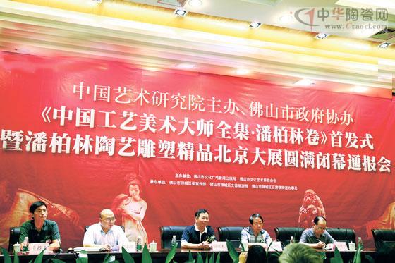 由中国艺术研究院主办,广东省佛山市人民政府等多个单位承办的《中国工艺美术大师全集·潘柏林卷》首发式暨潘柏林陶瓷精品展,8月1日在北京贵宾楼饭店圆满落幕。这次高规格、高水平的石湾陶艺展览获得国家文化部、新闻出版署等有关部门领导、专家及社会各界人士的高度肯定。期间,来自全国文化艺术界的20多位著名学者围绕“传统陶瓷雕塑的传承与发展”等主题,进行了热烈讨论。
