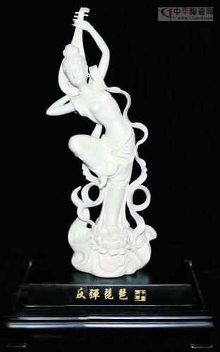 取材于敦煌飞天艺术。敦煌飞天是敦煌莫高窟的名片,是敦煌艺术的标志。只要看到优美的飞天,人们就会想到敦煌莫高窟壁画艺术。佛教中把空中飞行的天神称为飞天,是引导众生的灵魂羽化升天到净土天界的象征。作品的飞天站在莲花上反弹琵琶,其轻盈的体态,飘曳的长裙,飞舞的彩带,迎风舒卷,飞翔姿态十分优美,展现出纤纤神韵的飞天具有奋发进取、豪迈有力、自由奔放、变化无穷的飞动之美。该作品荣获“2011年工艺美术大师作品暨工艺精品博览会金奖”。