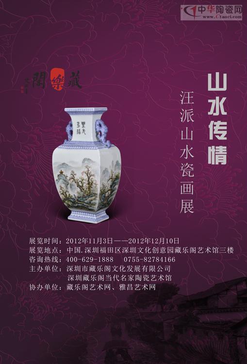 为了弘扬民族传统文化,展示陶瓷艺术瑰宝。深圳市藏乐阁文化发展有限公司、深圳藏乐阁当代名家陶瓷艺术馆于11月3日举办“山水传情——汪派山水瓷画展”,展览征集汪派山水瓷画作品百余件,囊括汪派山水四代传人精品力作。作品以景德镇民国时期,彩瓷名师珠山八友之一汪野亭先生开创瓷上粉彩文人山水画为主线,上溯晚晴浅绛彩瓷流派,下接汪氏几代传人,旨在让读者充分了解“汪派山水”艺术流派演变历程,以及汪派后人的传承和出新。此次展览亦有:王步、程门、潘匋宇、量甫、程焕门、珠山八友等诸多民国瓷器大家的作品共百余件堪称精品的传世之作。关于此次展览的最新动态请登录藏乐阁艺术网官方网站或关注藏乐阁艺术网官方微博,详情请致电400—629—1888或亲临中国.深圳福田区深圳文化创意园藏乐阁艺术馆三楼。欢迎广大藏友前来参观品茗。
