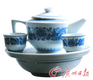 上世纪80年代的华风瓷厂厂货,8头带茶盘青花茶具(部分)。