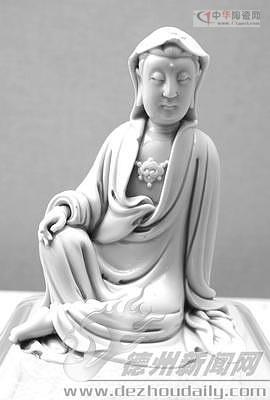 我国瓷器制作历史悠久,品种繁多,除了高贵典雅的青花瓷和色彩艳丽的彩瓷外,素雅的白瓷以自然天成的独特美深受喜爱。白瓷最早出现于北朝,但直到明代才真正成熟,呈现出白釉、甜白釉、青白釉、象牙白等不同釉色特点。其中以明代德化窑的象牙白最为著名,市博物馆就藏有一件这种瓷器——建瓷菩萨。