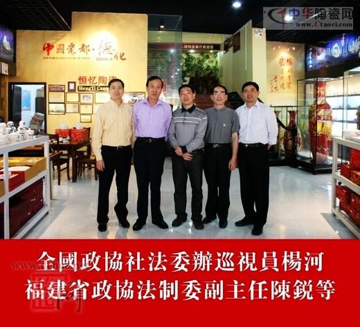 日前,全国政协社会和法制委员会办公室巡视员杨河、省政协法制委副主任陈锐、市政协法制委负责人和县政协主席苏兴羽、副主席刘志阳等一行莅临“中国龙瓷”考察。