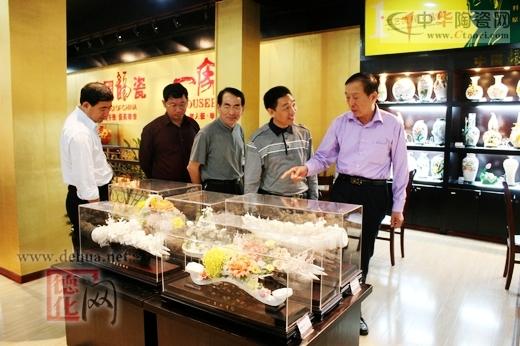 林鸿福董事长向考察团介绍了中国龙瓷主要作品创作理念及文化内涵,并对作品的获奖情况进行介绍。