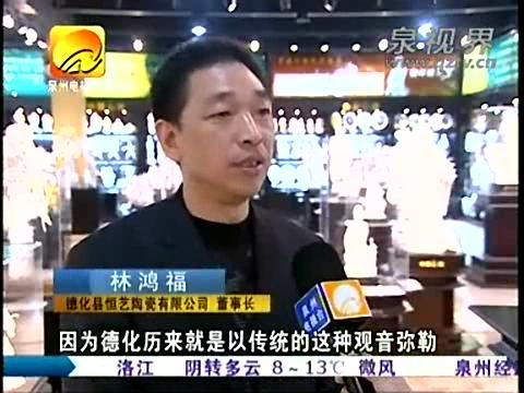 主持人:德化全县现有陶瓷企业1400多家,如何在这千军万马中脱颖而出,除了加快提升传统的陶瓷制作工艺,还要开辟创新性的品牌渠道,为此拓展他们建立了品牌运营中心,结合全国各地区不同的文化特点,在融合德化本土的陶瓷艺术将品牌推向全国。