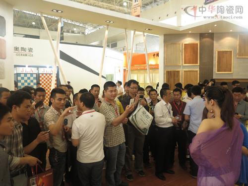 佛山国际会议展览中心展馆,客流不息,人气爆棚。首次参展并拿下168平方米大展位的卡佛陶传来佳绩,仅18日当天接待1000多名客户,意向成交额约达六百万。施琅陶瓷、尚金石艺、典美陶瓷、自然道建材等均反响18日接待客户较多,热销产品集中在微晶石、抛光砖、3D喷墨产品。