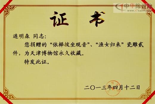 日前,泉州市工艺美术大师连明森创作的两件瓷雕作品,《依榉披坐观音》和《渔女归来》获天津博物馆永久收藏。