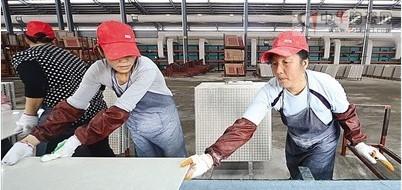茶陵华盛建筑陶瓷有限公司的流水生产线上,工人们正在紧张地作业