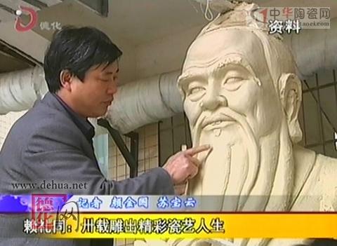 2011年,我县决定复建文庙,同时为之量身定做一尊大型的孔子瓷雕塑像,赖礼同揽下这项前无古人的活儿,挑战前所未有的制作难题。从去年年初开始,赖礼同把精力放在了研究孔子塑像上,在他的陶瓷研究所,我们见到了已经塑造成形的孔子塑像,造型丰满、工艺精美、面相庄重慈祥、衣纹清晰流畅飘逸。孔子塑像高2.7米,烧成后可达2.2米,这尊雕塑目前是独一无二整体烧制成型的,在艺术和技术上都有很多的新突破。赖礼同说,孔子塑像烧制成功后准备申报吉尼斯世界纪录。