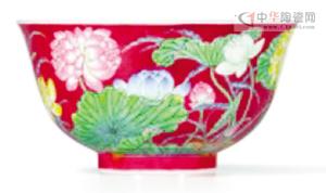香港苏富比2013年春拍中以7400万港元成交的清康熙御制胭脂红地珐琅彩莲花盌