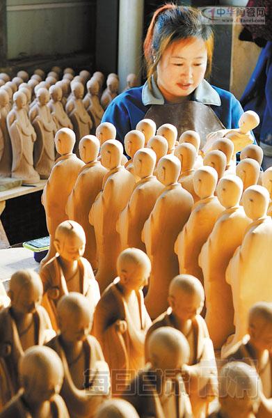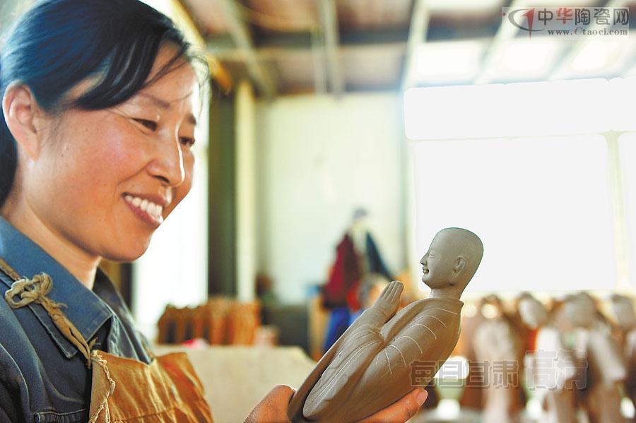 在被誉为“东方雕塑馆”的甘肃天水麦积山石窟第133号窟里,有着一尊称之为“东方微笑”的小沙弥造像,是北魏时期石窟雕像中最具特色的代表作之一,其面带会心微笑的逼真形态在世界石窟艺术史上享有盛誉。为了让更多人看到“东方微笑”造像真容和了解麦积山石窟文化,天水汉唐艺术苑的民间艺术家们经过十几年的摸索研究,选取麦积山红土、采用传统雕塑技艺仿制了精美的“东方微笑”小沙弥造像作品,在国内外艺术品市场上深受欢迎、屡获大奖,不仅带动了当地旅游经济,更让麦积山石窟文化得到进一步传承发扬。