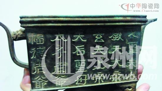 锡质香炉不大,上面刻有“玄天上帝”“妈祖”等字,而这些神明在泉州多地均有奉祀。