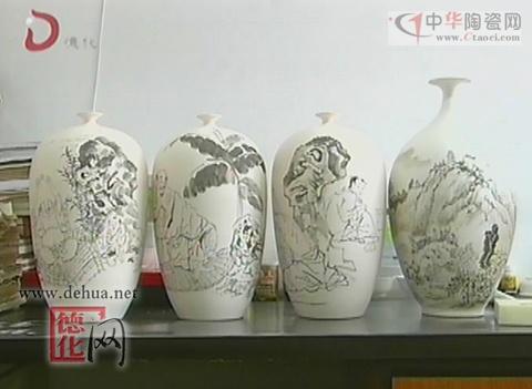 【同期声:泉州市陶瓷研究所工艺美术师:许兴田:这次(省)人大书画院到德化来采风,跟他们交流学习,对我们(在陶瓷上)作画的水平会有大的帮助。】