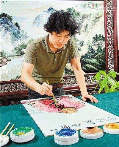 昨日,来自中央美院的画家董俊良现场创作,画在瓷板上的画作经画窑烧制后即成瓷画。
