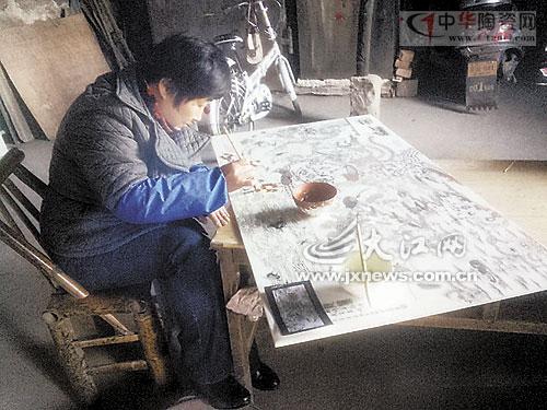 瓷器工人正在上色。