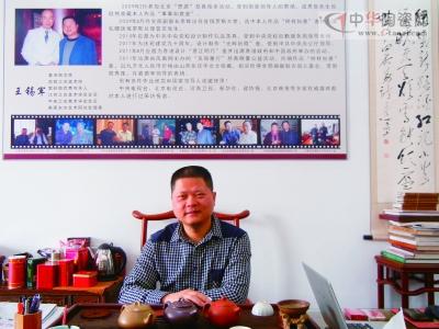 王锡军者,心宽体胖,富贵之态,王府陶庄庄主是也。善言谈,学识渊博,机敏干练中不失质朴,以稳为性,以素为质。问所职何求,答曰,“历尽艰辛不觉苦,赢来赞誉慰平生”,感之,赞之!生于宜兴丁蜀镇陶瓷村的王锡军自幼看母亲制壶。他说制壶很苦、很累,那时候造一个壶只能挣一毛几分钱,母亲每天造20个,以此养家。由于当地家家户户都制壶,中学毕业以后,他自然就跟着母亲学习,后来越做越喜欢,竟达到着迷的程度。资质聪颖的王锡军在充分掌握打泥片等紫砂制作基本技能的基础上,刻苦钻研紫砂雕、塑、嵌、刻、绞、书画等技艺。王锡军的紫砂作品创意新颖、细腻传神,令他很快在紫砂界脱颖而出。