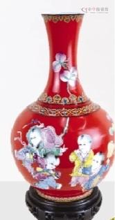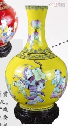 玉堂春瓶为雍正时期新出现的一种造型,作赏赐之用。撇口,细长颈,肩部装饰凸弦纹,圆腹,圈足。瓶上所绘婴戏图即描绘儿童游戏时的画作,又称“戏婴图”,是中国人物画的一种。婴戏图以小孩为主要绘画对象,以表现童真为主要目的,画面上的儿童或玩耍,或嬉戏,千姿百态,妙趣横生。还有和生肖图案、各种吉祥器物、儿童游戏结合的。婴戏图最早出现在唐代长沙窑瓷器上,明清时期达到鼎盛。婴戏图中孩童纯真可爱的形象,特别能表现节庆欢乐的气氛,有祈福求安的意义,也是百子千孙、多子多福的好兆头。