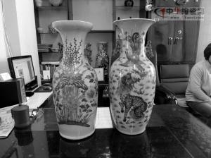 “这种嫁妆瓶也被称作掸瓶,以前,主人经常把鸡毛掸子插放在里面。”张应嘉说,从收藏价值看,单只价值10万元以上。