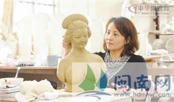 陈丽玲的陶瓷技艺融合了各种瓷质之长,以女性视角,塑造优雅的女性形象。成于她手的“金陵十二钗”系列美女,比如,《黛玉埋香》、《湘云醉酒》、《妙玉奉茶》等,将我们陶瓷家族的清滑如脂、细腻温婉,发挥得淋漓尽致。现在,陈丽玲计划设计唐宋明清不同朝代的女性形象,演绎一回陶瓷版本的穿越故事,特别让人期待。