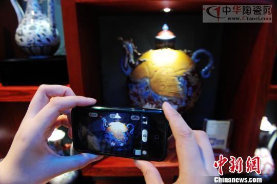 战国时期越窑青釉龙首提梁壶(图左)与明永乐青花瓷(图右)。