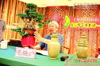 装饰会场的陶艺摆件《逢春》受到专家毛晓沪的关注。